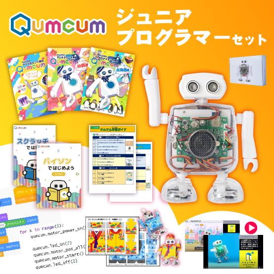 ★新発売記念!10%OFF★ ロボットプログラミング教材【家庭学習/オンライン授業対応】Qumcum ジュニアプログラマーセット〈二足歩行おしゃべりロボット〉※対象年齢:8歳以上