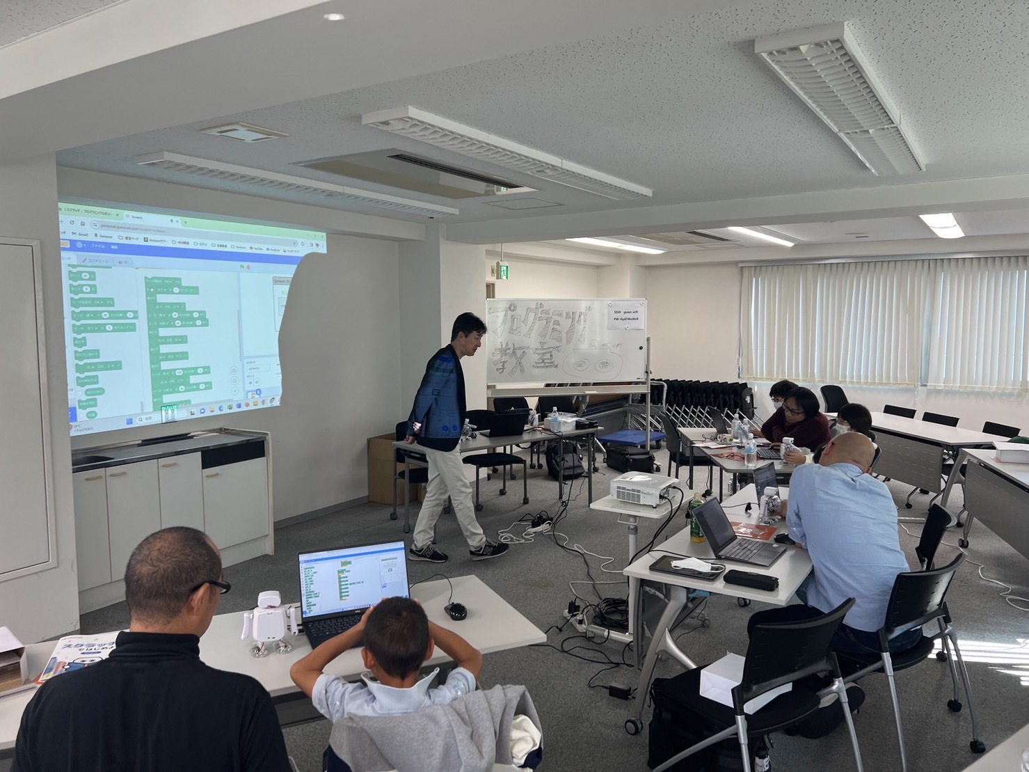 [vc_row][vc_column][vc_column_text uncode_shortcode_id=”214095″]テクノブレイブ株式会社様(東京本社)との合同企画で2023年10月28日体験会を開きました。8月ころ別件でお邪魔をさせていただいた折、スクラッチプログラミングで動くクムクムロボットにご興味を持っていただき、「IT系の会社であるからこそ 自分の子供に親の仕事を知ってもらうというのもいいんじゃないか?」ということで行った企画です。本社に勤めるお父さん・お母さんに小学生のお子様をお連れ頂いてのプログラミング大会?です。